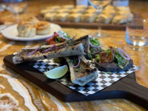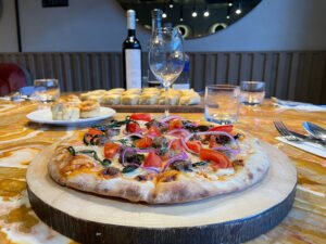 Acompañada de pan de la casa, aceitunas, frutos secos y fruta de la estación. (Incluye jamón york, salami, pepperoni, jamón serrano, queso Oaxaca, queso gouda, queso panela.)